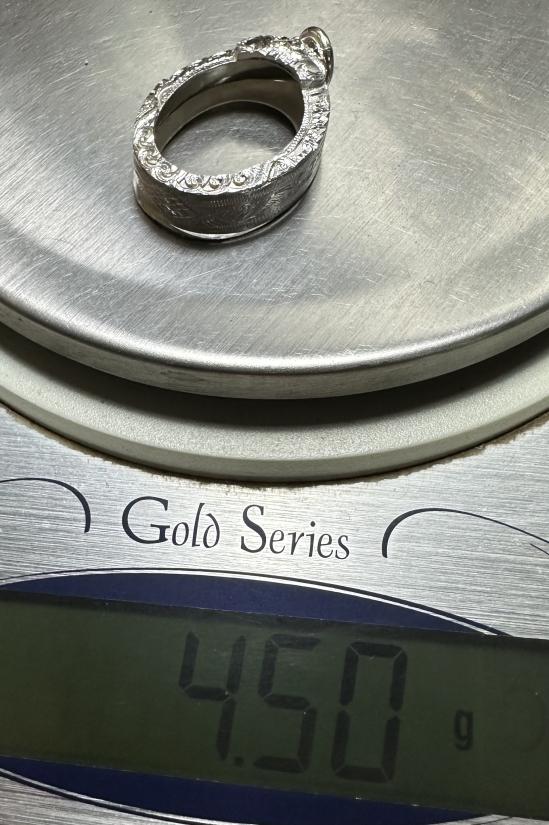 กรอบเงินแกะลายขนาดเหรียญรูปไข่เม็ดแตง ขนาดหน้าจอ 1.2*2.1cm |