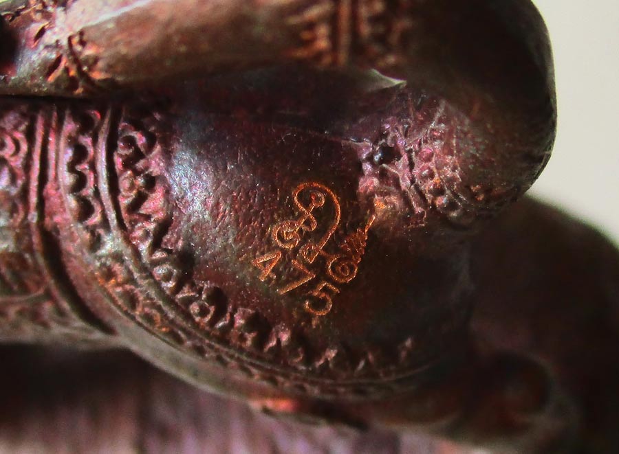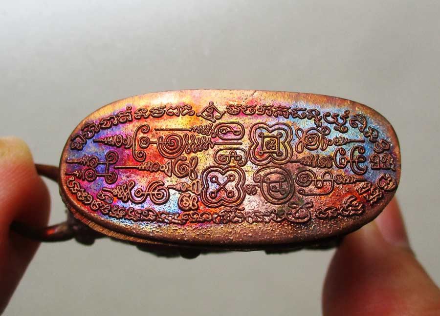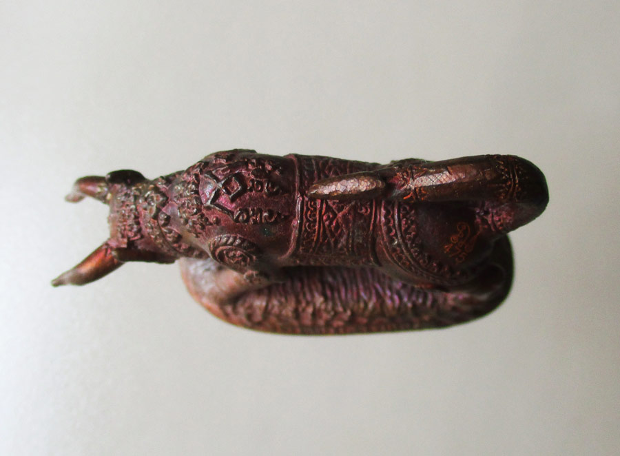 ภาพใต้ฐานอุดครั่งพุทธา ปิดทับด้วยเหรียญมหายันต์ทองแดง
