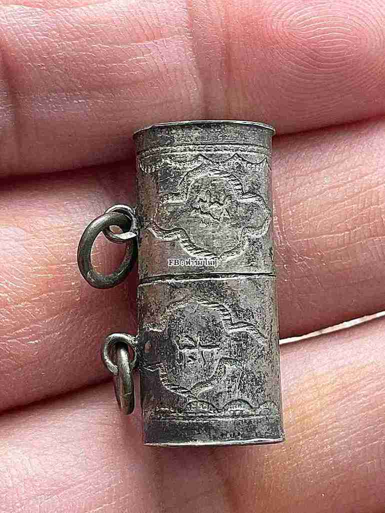 *ที่ฆ้อนมีอีกเยอะครับ เคาะเดียว* ปลอกเงินใส่ตะกรุดเก่า "ภาษาจีน คำว่า ฮับเก้งเป่งอ้าน(อยู่เย็นเป็นสุข สงบสุข ร่มเย็น)" สวยเดิม คลาสสิคครับ ไม่ค่อยพบเจอ มีรอยจาร |