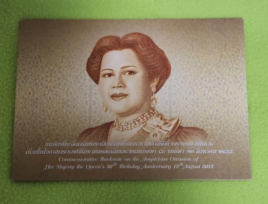 ธนบัตรเฉลิมพระเกียรติสมเด็จพระนางเจ้าสิริกิติ์ พระบรมราชินีนารถ เนื่องในโอกาสพระราชพิธีมหามงคลเฉลิมพระชนมพรรษา ๘๐ พรรษา ๑๒ สิงหาคม ๒๕๕๕ ราคาเปิดประมูล 100 บาท |