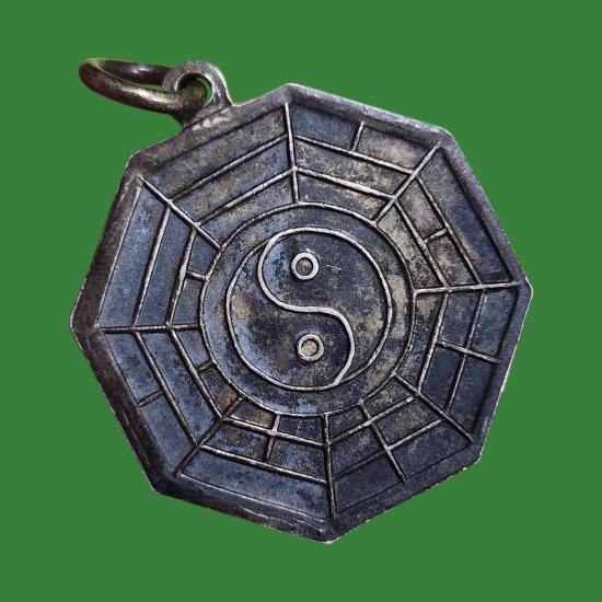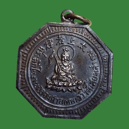 เหรียญศาลเทพเจ้าไท้เสียงเล่ากุน อ.แกลง ระยอง สร้างในงานฉลองศาลเทพเจ้าไท้ฯ เนื้อเงิน |