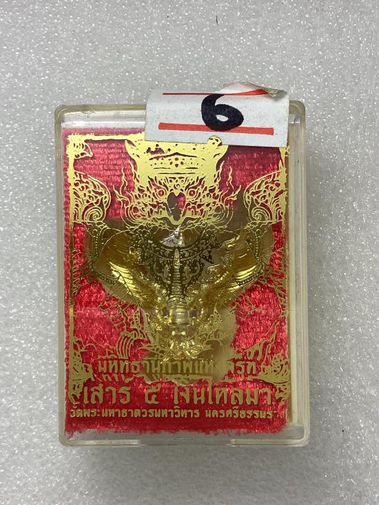 พญาครุฑเสาร์ ๕ เงินไหลมา วัดพระมหาธาตุ วรมหาวิหาร จ.นครศรีธรรมราช สูง 2.5 ซ.ม. เนื้อทองระฆังศรัทธา กล่องเดิม ( แจกผู้ร่วมพิธีปลุเสก ) |