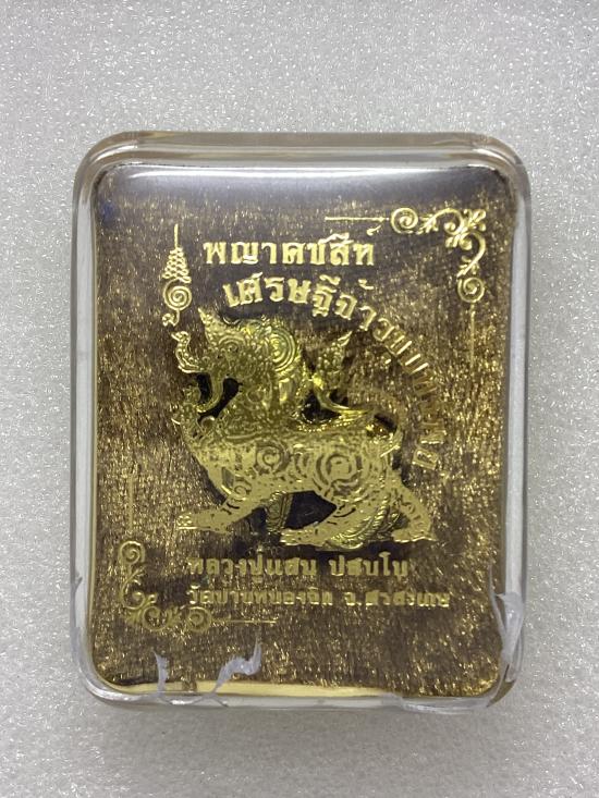 พญาคชสีห์ รุ่น เศรษฐีจ้าวขุมทรัพย์ หลวงปู่แสน วัดบ้านหนองจิก จ.ศรีสะเกษ เนื้อทองสมฤทธิ์ กล่องเดิม ( ฝากล่องแตก ) |