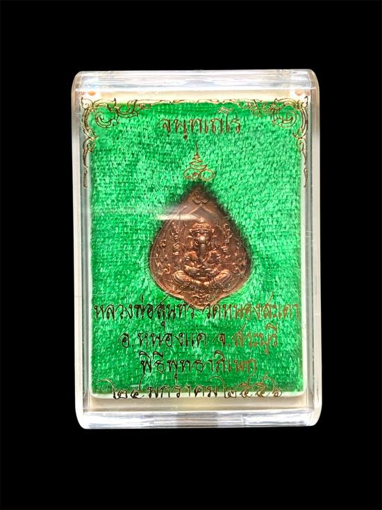 เหรียญพระพิฆเนศ รุ่น จนฺทเถโร 80 หลวงพ่อสุนทร วัดหนองสะเดา (เนื้อทองแดง) ปี 2556 ปลุกเสกพิธีใหญ่ มีโค๊ด หมายเลขกำกับ มาพร้องกล่องเดิมๆ