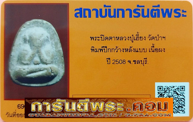 รายละเอียด พระปิดตาหลวงปู่เฮี้ยง วัดป่าฯ พิมพ์ปีกกว้างหลังแบบ เนื้อผง ปี2508