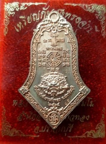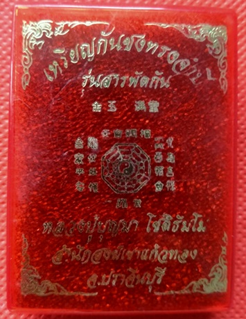 เหรียญกันชงทรงจำปี รุ่นสารพัดกัน หลวงปู่บุญมา โชติธมโม สำนักสงฆ์เขาแแก้วทอง จ.ปราจีนบุรี(เนื้อทองแดงลงยาสีม่วง)NO.65 |