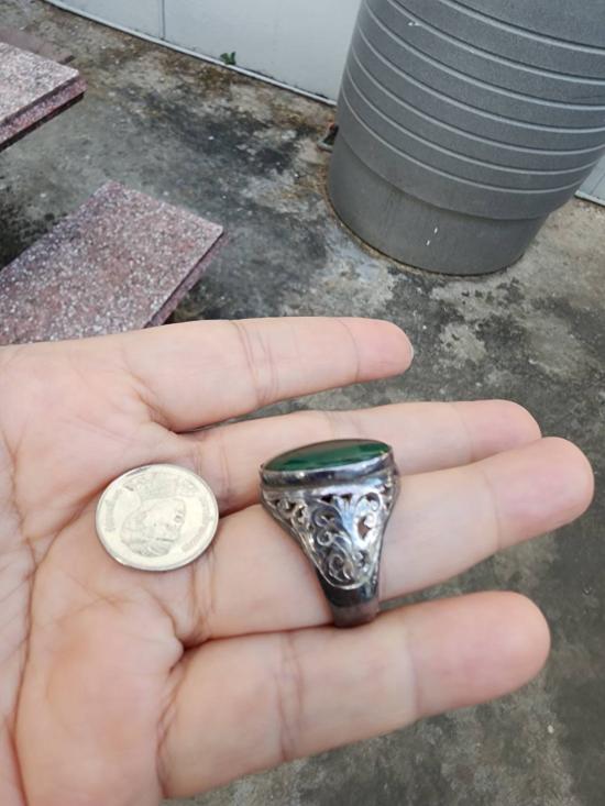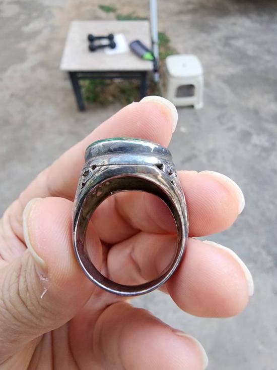 แหวนเงินหัวหยกพม่า เนื้อเทียน เม็ดโตๆ ขนาดประมาณ 62-63 ตามรูป