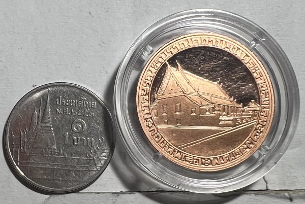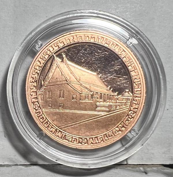 เหรียญสมเด็จพระเจ้าตากสินมหาราช ที่ระลึกโครงการบูรณะโบราณสถานในบริเวณพระราชวังเดิม ปี 2538 ครับ |