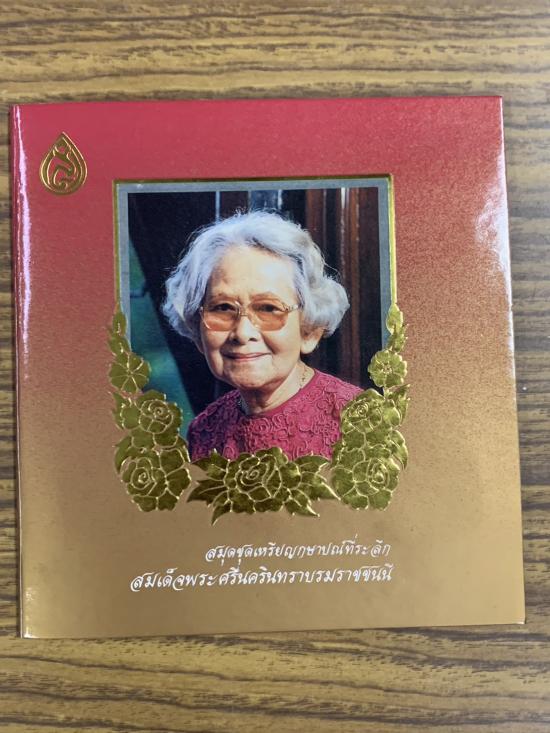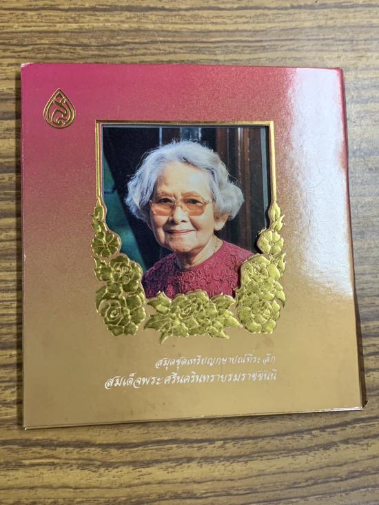 สมุดชุดเหรียญกษาปณ์ที่ระลึก สมเด็จพระศรีนครินทราบรมราชชนนี สมเด็จย่า กองเครื่องราชอิสริยยศ กรมธนารักษ์ จัดทำ ประกอบไปด้วย เหรียญดังนี้