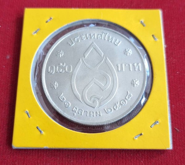 เหรียญกษาปณ์เนื้อเงิน ชนิดราคาหน้าเหรียญ 150 บาท ที่ระลึก 75 พรรษา สมเด็จพระศรีนครินทราบรมราชชนนี ปี 2518 หายากแล้ว จำนวนการผลิตน้อย |