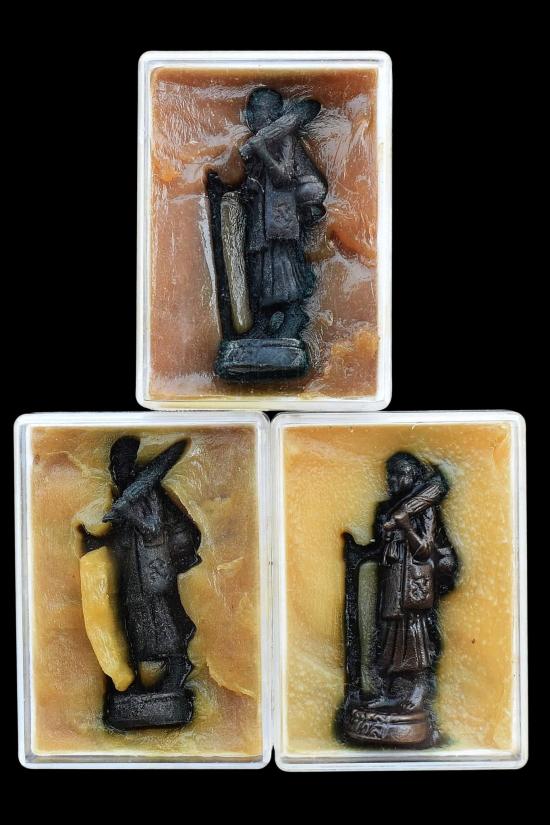 ชุด 3 ตลับ...สีผึ้งพระสิวลี (สร้างน้อย) ปี 2555 หลวงปู่ชั้น วัดดอนสนวน จ.ชัยนาท พร้อมซองรูปใบฝอยเดิมจากวัด สภาพพระตามรูปที่ลงทุกประการ (ขนาดประมาณ 3.5 x 4.8 ซม.)