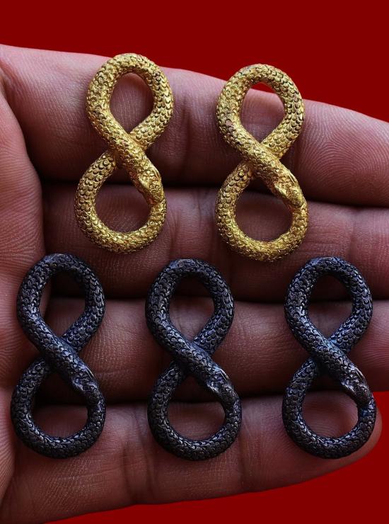 ชุด 5 องค์...งูกินหาง (ตำรับพิสดาร) เนื้อทองแดงผสมฯ + ทองสตางค์ผสมโลหะอาถรรพณ์ ปี 2556 พระครูน้อย วัดชัยมงคล จ.สุพรรณบุรี พร้อมซองรูปเดิมจากวัด สภาพพระตามรูปที่ลงทุกประการ (ขนาดประมาณ 3.5 x 1.5 ซม.)