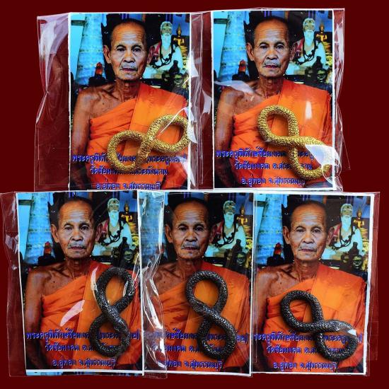 ชุด 5 องค์...งูกินหาง (ตำรับพิสดาร) เนื้อทองแดงผสมฯ + ทองสตางค์ผสมโลหะอาถรรพณ์ ปี 2556 พระครูน้อย วัดชัยมงคล จ.สุพรรณบุรี พร้อมซองรูปเดิมจากวัด |