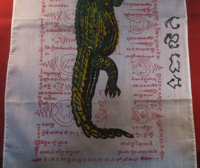 ผ้ายันต์ รูปจรเข้ ไม่ทราบที่ มีรอยจารยันต์ด้วนข้าง ครับ