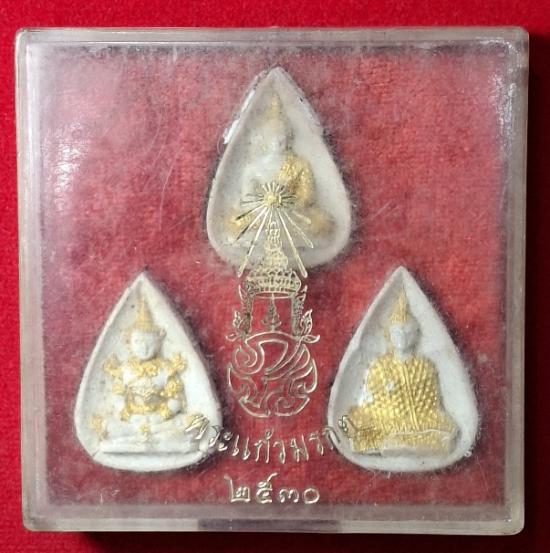พระแก้วมรกต-หลังภปร. วัดพระศรีรัตนศาสดาราม ปี2530 (ชุดกรรมการ พิธีเดียวกับพระกริ่งปวเรศ2 หลวงพ่อฤาษีลิงดำ วัดท่าซุง หลวงปู่สิม หลวงพ่อแพ หลวงปู่ทิม หลวงพ่อเปิ่น หลวงพ่อแช่ม หลวงพ่อพูล กล่องเดิม หายาก) |