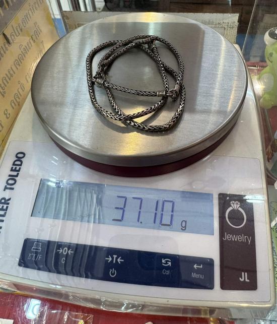 สร้อยเงินแท้รมดำ 3 ห่วง ยาว 25 นิ้ว หนัก 37.1 กรัม (หนัก 2 บาทกว่าๆ) ขนาดยาวสวมหัวได้