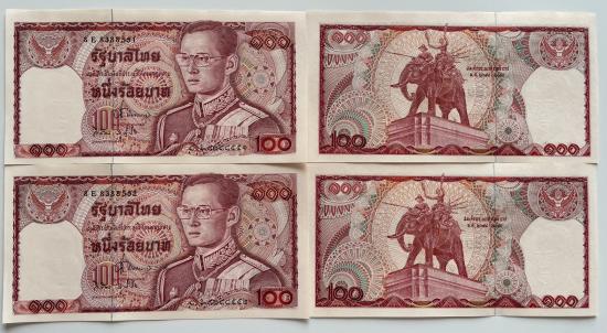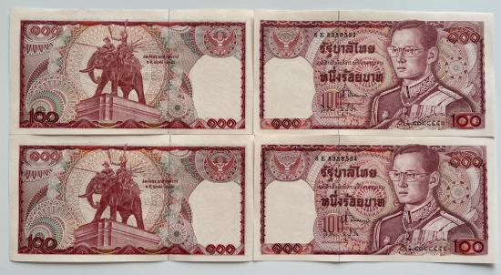 ธนบัตร 100 บาท รัชกาลที่ 9 แบบ 12 จำนวน 4 ใบ ช้างแดง สภาพสวยตามรูป |