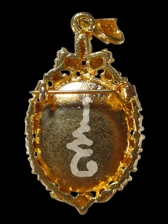 เข็มกลัดล็อกเก็ตล้อมเพชรหลังจาร หลวงปู่เจือ วัดกลางบางแก้ว นครปฐม วัดใจ 100 แดงครับ |