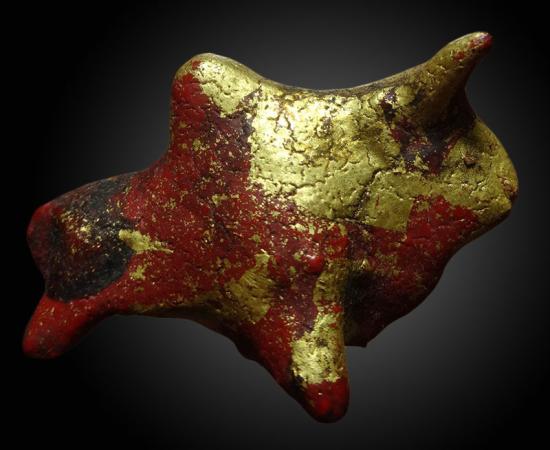 วัวธนูล้านนา เนื้อดินผสมผงปิดทองอุดกริ่ง |