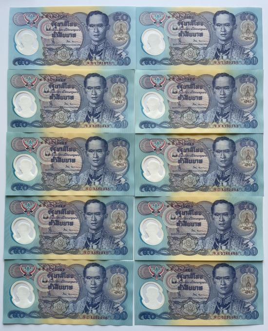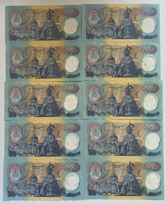 แบงค์ 50 บาท โพลิเมอร์กาญจนาภิเษก จำนวน 10 ใบ สภาพสวยตามรูป |