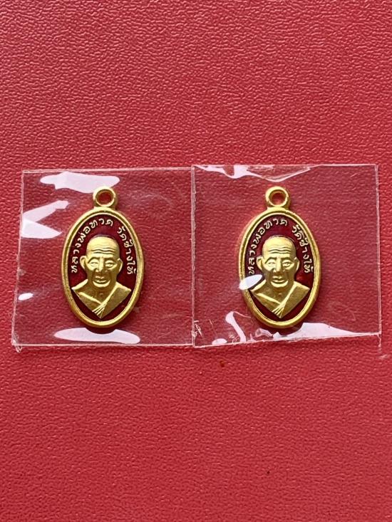 เคาะเดียวแดง เม็ดแตง 2องค์หลวงปู่ทวด รุ่น102ปีอาจารย์ทิม เนื้อชุบทองลงยาสีแดง |