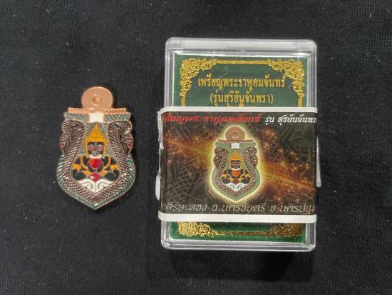 เหรียญราหูอมจันทร์ รุ่นสุริยันต์จันทรา ปี 2563 วัดศรีษะทอง จังหวัดนครปฐม เนื้อนวะโลหะ เลขเรียง 2340 พร้อมกล่อง |