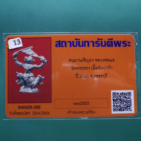 หนุมานเชิญธง หล่อโบราณ เนื้ออัลปาก้า หลวงพ่อแล วัดพระทรง จ.เพชรบุรี ปี 2545...13... (69.2.12 |