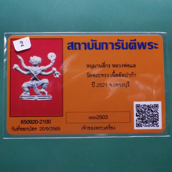 หนุมานหล่อโบราณ 4 กร เนื้ออัลปาก้า หลวงพ่อแล วัดพระทรง จ.เพชรบุรี ปี 2521....1.. (69.2.12