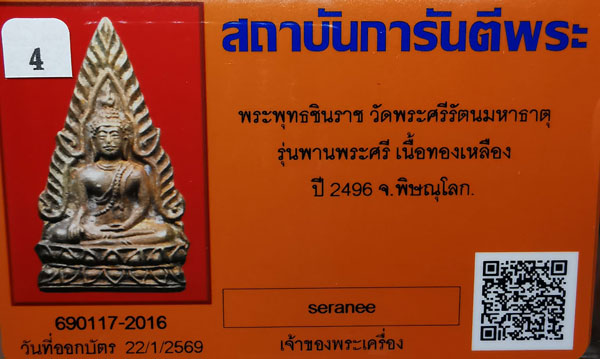 พระพุทธชินราช วัดพระศรีรัตนฯ รุ่นพานพระศรี เนื้อทองเหลือง ปี2496 จ.พิษณุโลก + บัตร G-pra สภาพเดิมค่ะ |