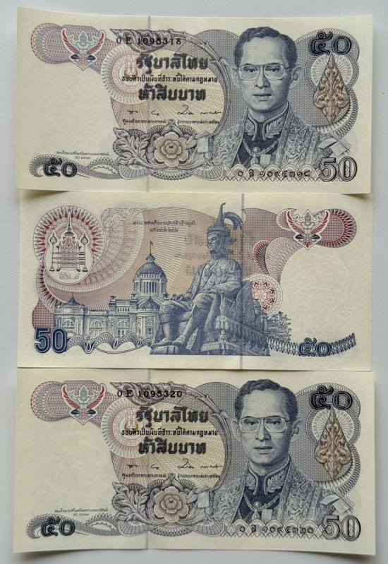 ธนบัตร 50 บาท รัชกาล 9 ลายน้ำสมเด็จย่า จำนวน 3 ใบ สวยเดิมๆๆ |