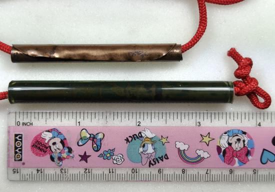 2.ตะกรุดทองแดงใส่หลอดยาง ขนาดประมาณ 3.5 นิ้ว