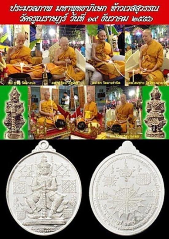 เหรียญท้าวเวสสุวรรณ รุ่นมหาเศรษฐี เนื้อเงิน วัดจรูญราษฎร์ กล่องเดิม วาระการปลุกเสกโดยพระเกจิ วาระที่ 1 ปลุกเสกเดี่ยวที่กุฏิหลวงพ่อชาญ วัดบางบ่อ. วาระที่ 2 ปลุกเสกเดี่ยวที่กุฏิหลวงพ่อฟู วัดบางสมัคร วาระที่ 3 ปลุกเสกเดี่ยวที่กุฏิพระมหาสุรศักดิ์ วัดประดู่ สมุทรสงคราม วาระที่ 4 พิธีพุทธาภิเษก 19 ธ.ค. 56 เวลา 19.30 น.....ณ วัดจรูญราษฎร์ จ.ชลบุรี วาระที่ 5 วันที่ 22 ธ.ค. 56 เวลา 19.00 น.ทอดผ้าป่า...เวลา 19.30 น.พิธีพุทธาภิเษก และพิธีหล่อพระ โดยมีพระเกจิอาจารย์ที่นั่งปรกปลุกเสกประกอบด้วย -หลวงพ่อชาญ วัดบางบ่อ จุดเทียนชัย พระเกจิอาจารย์ที่นั่งปรกปลุกเสกประกอบด้วย -เจ้าคุณเที่ยง วัดระฆัง -หลวงพ่อฟู วัดบางสมัคร -หลวงพ่อฮก วัดมาบรำบิด -หลวงพ่อสมชาย วัดโพรงอากาศ -หลวงพ่อมหาสันติ วัดจรูญราษฎร์ -หลวงพ่อขวัญ วัดนามะตูม -หลวงพ่อจำเนียร วัดถ้ำเสือ -พระอาจารย์สมพงษ์ วัดเกาะแก้ว นครสวรรค์ |