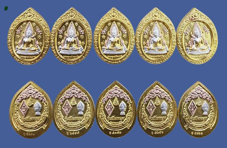( 5 องค์ ) เหรียญพระพุทธชินราช พิมพ์ รูปไข่ พิมพ์เล็ก เนื้อสามกษัตริย์ รุ่น ปิดทอง ปี 2547 สภาพสวยเดิมๆ มีโค๊คทุกองค์ครับ ( พระรุ่นนี้มีส่วนผสมจากแผ่นทองคำเปลวที่ลอกมาจากองค์พระพุทธชินราชครับ |