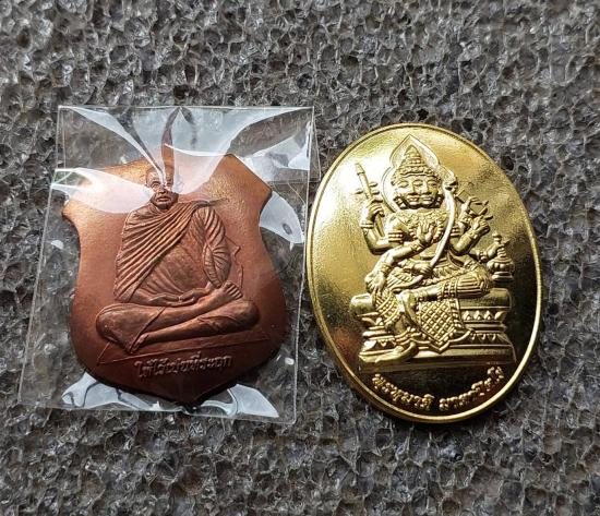 เหรียญโล่หลังยันต์ทองแดง ตอกโค๊ต ป.ท. และเหรียญพระพรหมรูปไข่ หลวงพ่อชำนาญ วัดชินวนาราม 2 เหรียญ |
