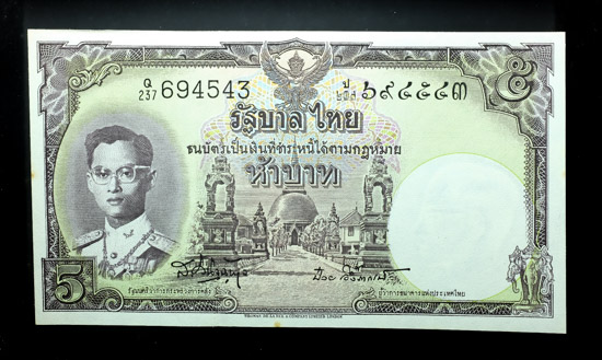 ในหลวง ร๙ ธนบัตรแบบ 9 ราคา 5 บาท รุ่น 5 ลายเซ็น ส.-ป๋วย UNC |