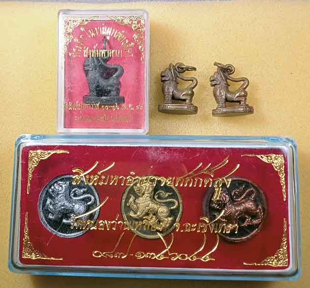 รูปหล่อสิงห์มหาลาภ วัดสิงห์สุทธาวาส จ.สิงห์บุรี 3 องค์ + พระผงสิงห์ ชุด 3องค์ วัดหนองว่านเหลือง ฉะเชิงเทรา |