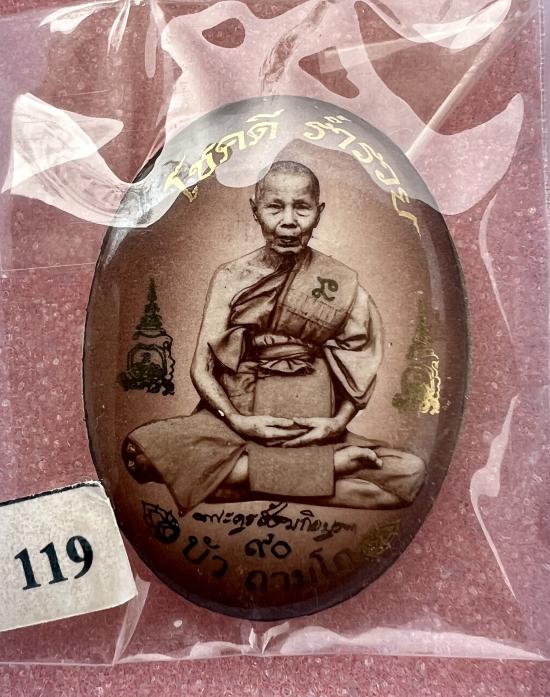 ล็อกเก็ตโสฬสมงคล90ปี สีน้ำตาลซีเปียหลังเงิน เลข119 ซีลเดิม