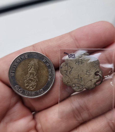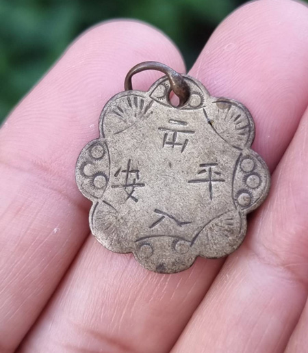 เหรียญจีนหรือเครื่องรางของขลังที่มีอักษรจีนอยู่ตรงกลาง