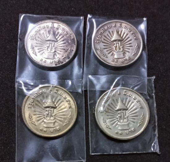 เหรียญเนื้อเงิน ร9หน้าเหรียญ10บาท ครองราชย์ครบ25ปี รวม4เหรียญ
