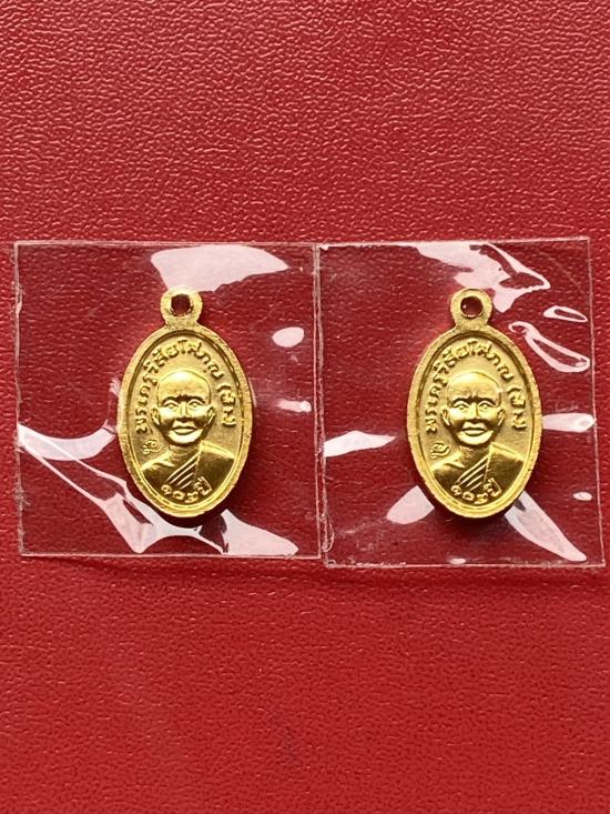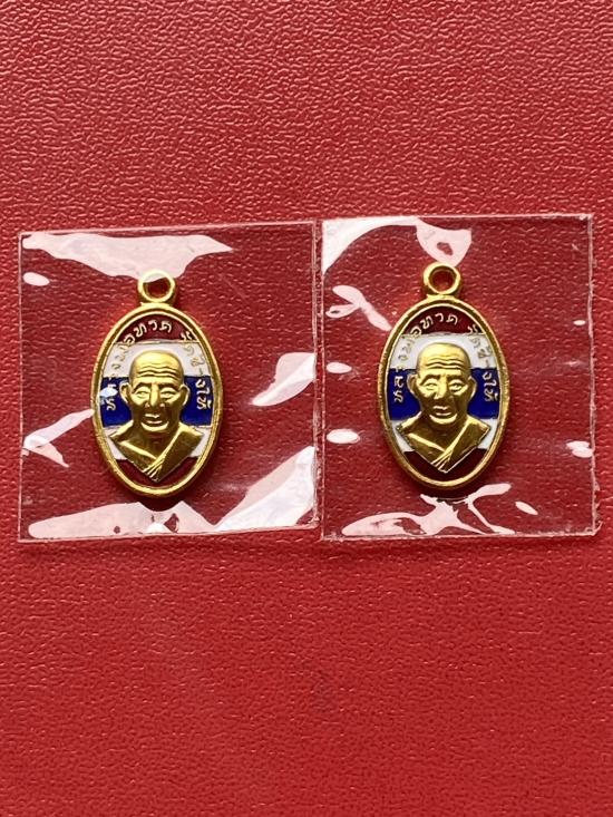 เคาะเดียวแดง เม็ดแตง 2องค์หลวงปู่ทวด รุ่น102ปีอาจารย์ทิม เนื้อชุบทองลงยาสีธงชาติ