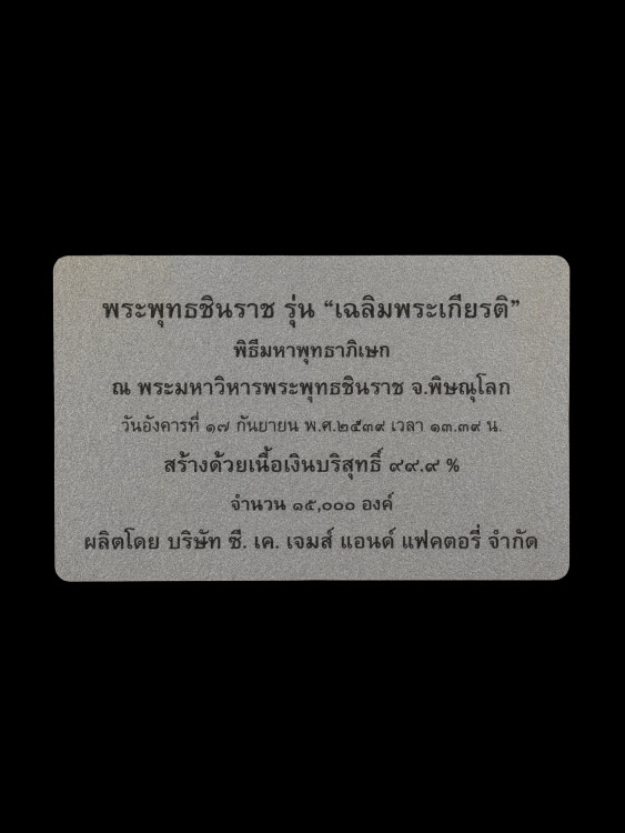 พระพุทธชินราช รุ่นเฉลิมพระเกียรติ (เนื้อเงิน) ปี 2539 พร้อมกล่อง!!! เหมาพระตามบ้านและพระที่เก็บเก่ามาลงวัดใจทุกรายการค่ะ เริ่มที่ 260 บาท !!! มีพระเครื่องวัดใจหลายรายการกดที่ค้อนดูได้ค่ะ