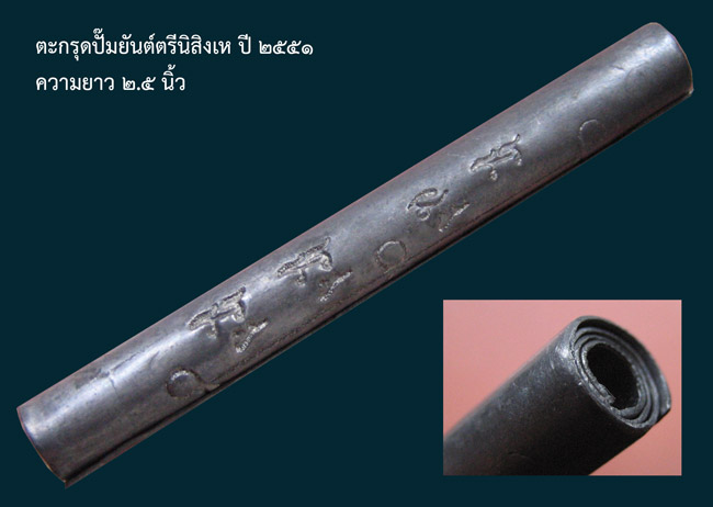 เคาะเดียว! ตะกรุดยันต์ตรีนิสิงเห ปี ๒๕๕๑ เนื้อตะกั่ว ความยาว ๒.๕ นิ้ว หลวงพ่อตัด วัดชายนา สวยๆครับ |