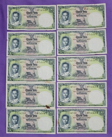 ธนบัตร 1 บาท ร.9 โทมัส 10 ฉบับ เรียงเลข |