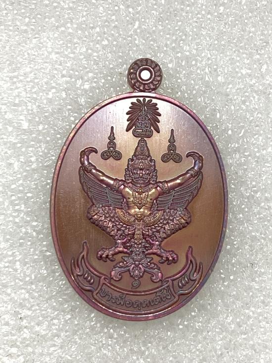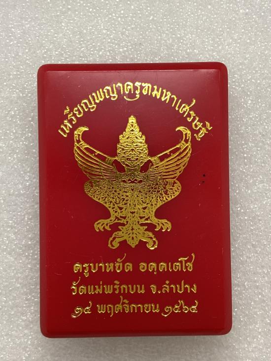 เหรียญพญาครุฑมหาเศรษฐี ครูบาหยัด อคฺคเตโช วัดแม่พริกบน จ.ลำปาง เนื้อทองแดงรมมันปู กล่องเดิม |