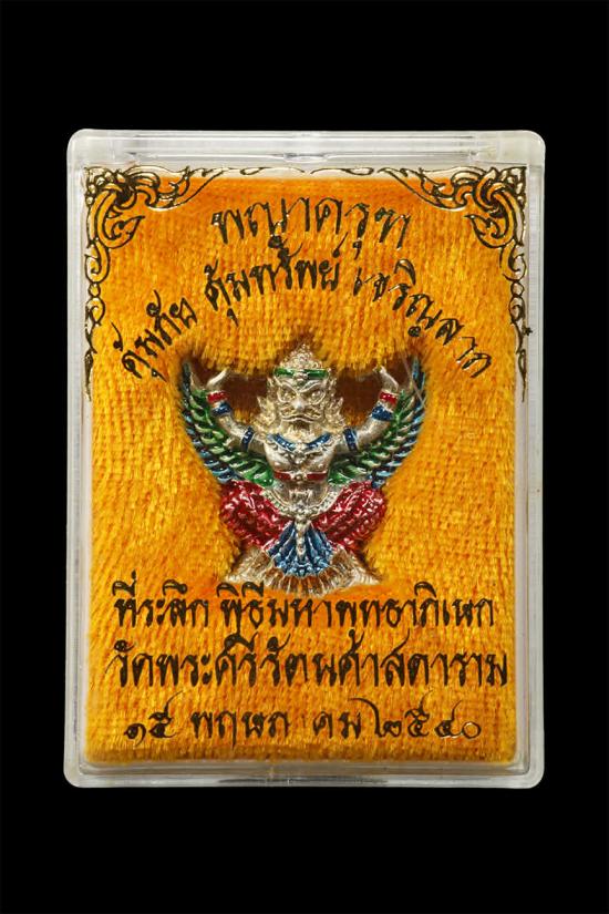 | 88888 รูปหล่อพญาครุฑ กำลังแผ่นดิน รุ่นแรก วัดสุทธาราม กรุงเทพมหานคร ปี 2540 เนื้อเงินลงยา (พิธีมหาพุทธาภิเษกใหญ่ ณ วัดพระศรีรัตนศาสดาราม<วัดพระแก้ว>) พร้อมกล่องเดิม สภาพเดิมเดิม 88888 |