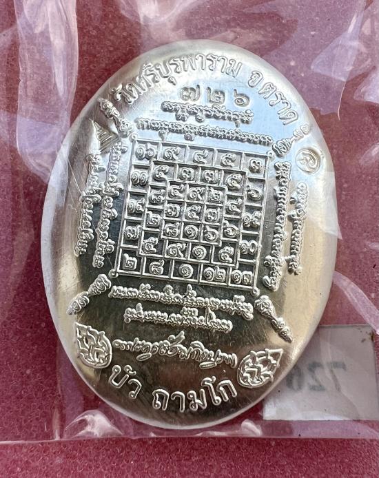 ล็อกเก็ตโสฬสมงคล90ปี สีแดงตัวหนังสือทองหลังเงิน เลข726 ซีลเดิม