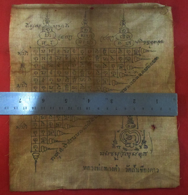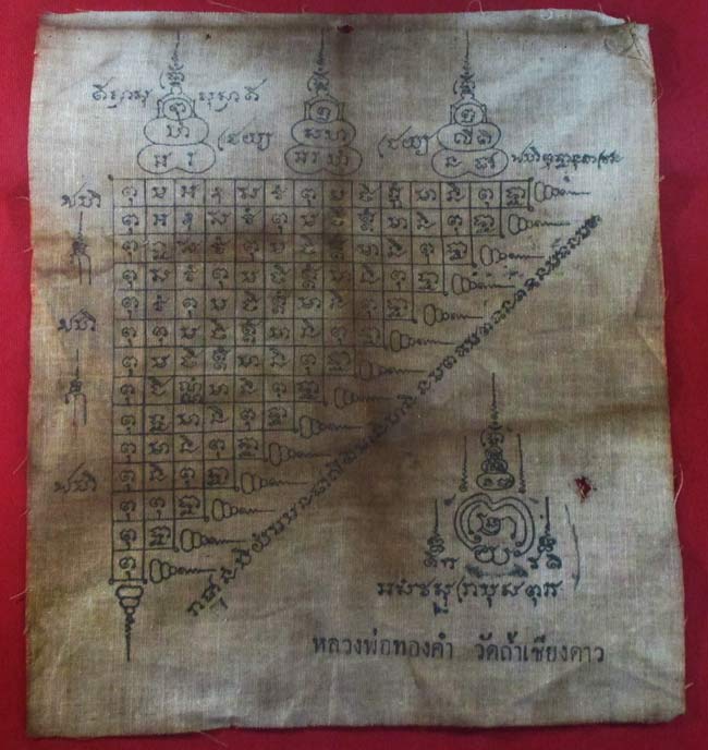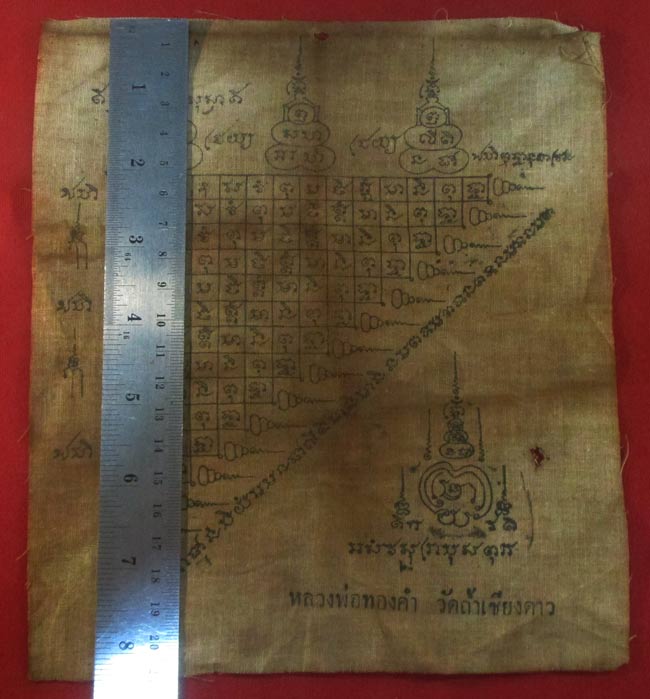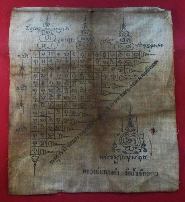 ผ้ายันต์ หลวงพ่อทองคำ วัดถ้ำเชียวดาว เนื้อผ้าดูเก่า ครับ (พระบ้าน ครับ) |