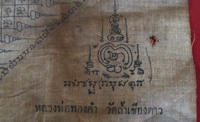 ผ้ายันต์ หลวงพ่อทองคำ วัดถ้ำเชียวดาว เนื้อผ้าดูเก่า ครับ