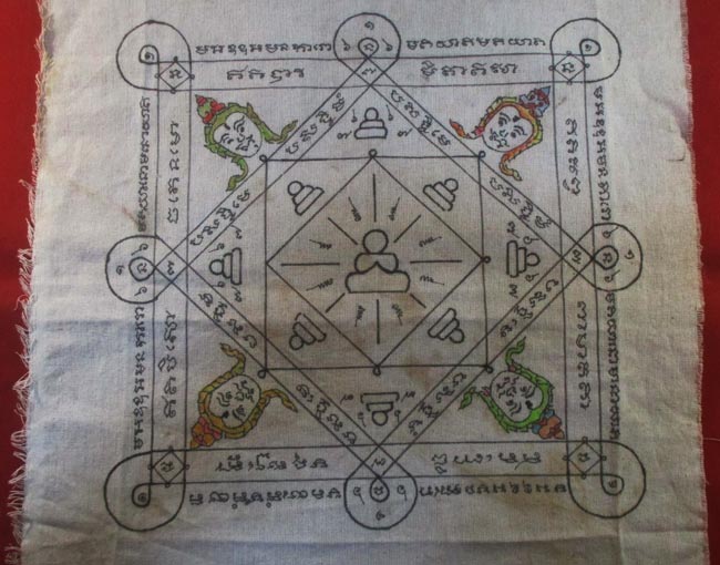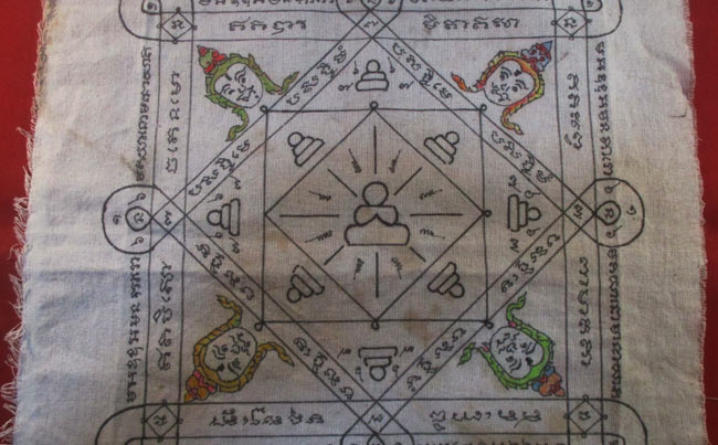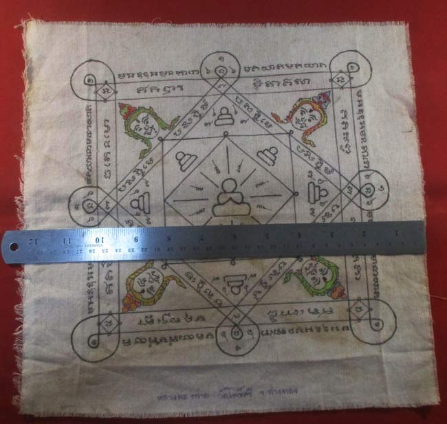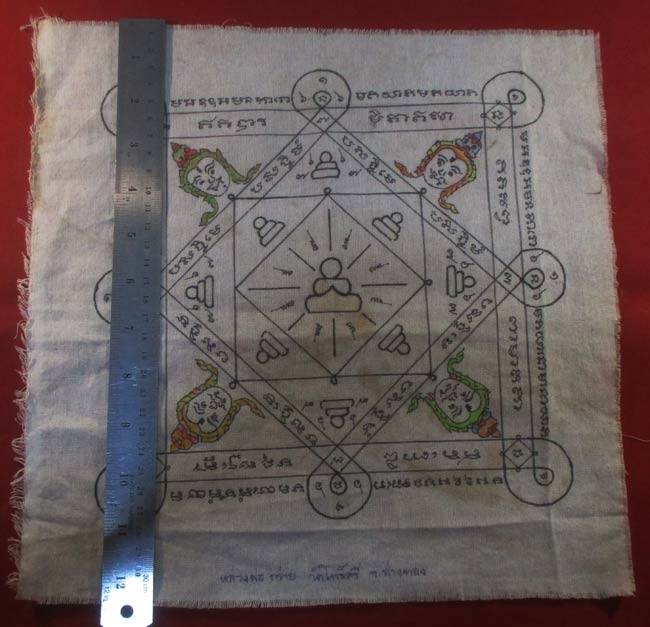 ผ้ายันต์ หลวงพ่อกร่าย วัดโพธิ์ศรี อ่างทอง จารยันต์ด้วยมือ ครับ