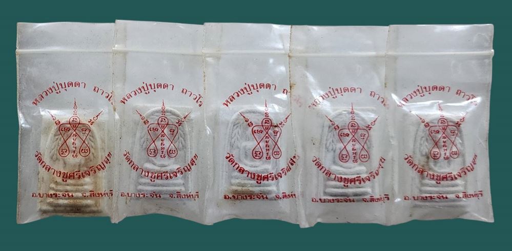 ( 5 องค์ )พระสมเด็จปรกโพธิ์หลังรูปเหมือนนั่งใบโพธิ์หลวงปู่บุดดา ถาวโร วัดกลางชูศรีฯ จ.สิงห์บุรี สภาพสวยซองเดิมๆครับ |